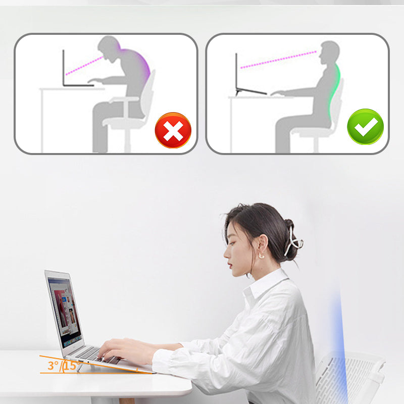 Ergonomisk design och effektiv värmeavledning - Genom att höja den bärbara datorn ger detta stativ en bekväm betraktningsposition och arbetsvinkel, vilket hjälper till att förhindra smärta i axlar och nacke vid långvarig användning. Den upphöjda positionen främjar också effektiv värmeavledning, så att den bärbara datorn kan kylas ned effektivt utan att blockera luftutloppet.